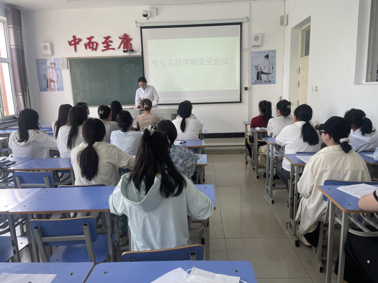 为确保学生专业实践学期顺利开展,强化安全意识与职业规范,6月11日中午,指导老师相玉秀在一号教学区1203教室组织召开专业实践学期动员会,共32名同学参加,围绕安全管理、职业暴露防护、考勤规范等重点内容展开深入交流与部署。