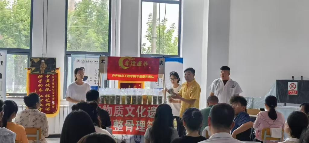 6月27日,齐齐哈尔工程学院应用型人才培养基地康复大厅内,护理学(专升本)微专业师生协同举办“非遗文化赋能职业健康”辅导员沙龙活动。护理学(专升本)学生在李氏宫廷养生茶制作技艺传承人李镭、吴氏整骨理筋术传承人吴迪指导下,以专业实践能力为全校辅导员提供健康服务,展现“专业+非遗”的融合育人成效。