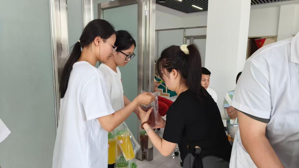 在养生茶体验环节,护理学(专升本)学生在李镭老师指导下完成药材配伍与炮制。运用《中医护理学》所学,向辅导员解析暴油三仙茶(山楂、决明子、荷叶)的组方逻辑,同步讲解阿胶桂圆红枣茶的气血双补功效。团队规范执行奉茶流程,将太裔三清茶等非遗茶饮与现代健康管理理念结合。