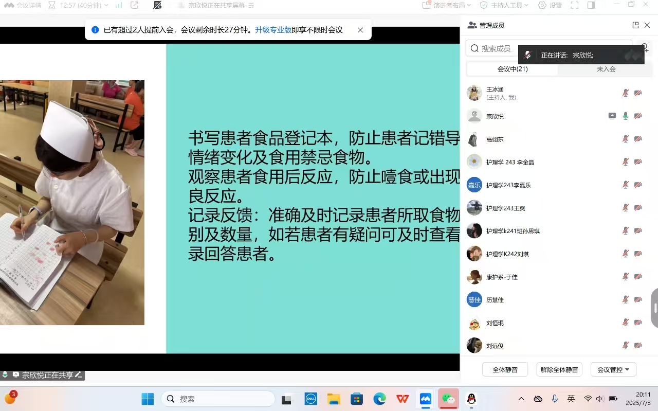 三次专业实践学期总结会,2025年7月3日,实习指导老师于佳组织召开了第三周实习工作总结会议,经过前两周的总结后同学们都基本熟悉了会议流程。
