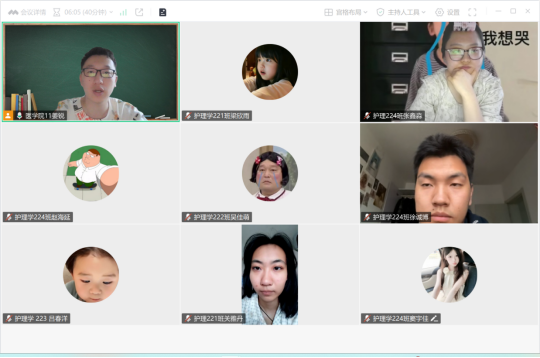 2025年6月29日晚,护理学专业中国人民解放军联勤保障部队第九六一医院实习队在腾讯会议开展线上实习总结会议,会议由姜锐老师进行主持,全体实习生参会。