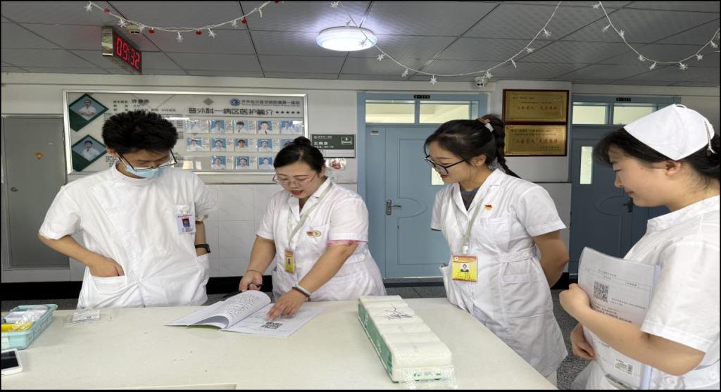 检查过程中,李岩老师重点查看了学生专业实践手册的书写情况,随机向学生提问科室相关知识,考察其对护理技术的掌握程度。从检查结果来看,学生们对专业知识和技能的掌握较为扎实。护士长与带教老师们纷纷对学生的表现给予高度评价,称赞他们素质高、懂礼貌,在实习期间学习态度认真,展现出良好的专业素养与精神风貌。
