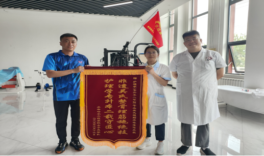 6月30日,齐齐哈尔工程学院女足队代表将一面绣有“非遗吴氏整骨理筋施绝技 护理学专升本二载守医心”的锦旗,郑重送至护理学(专升本二年制)专业骨干教师潘娜及吴氏理筋术非遗传承班师生手中,表达诚挚的谢意。
