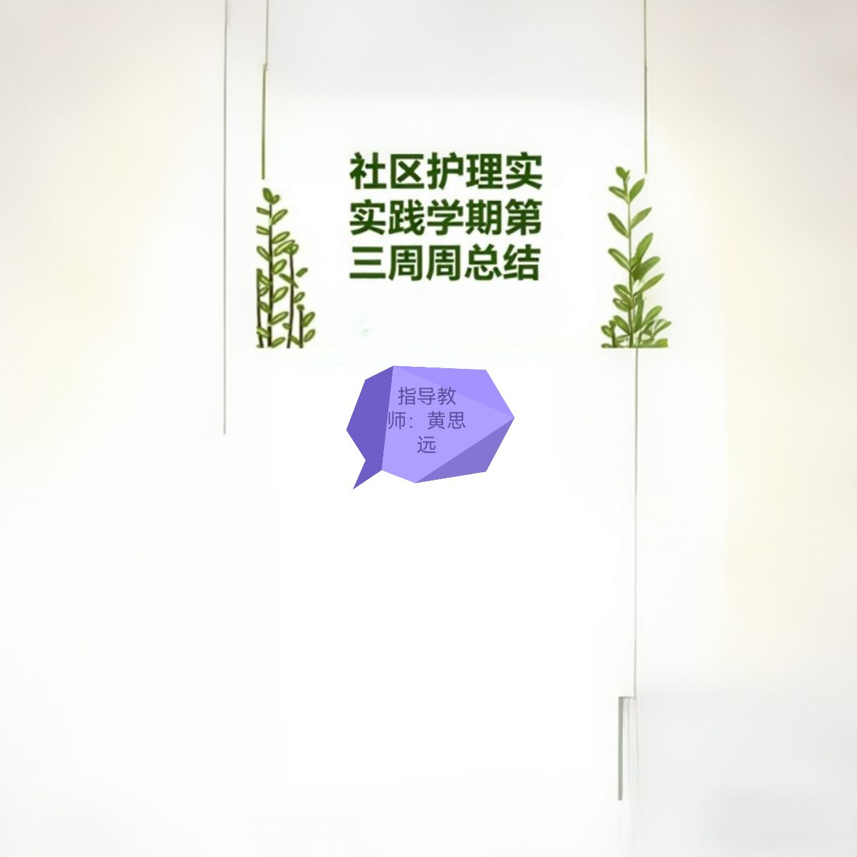 在社区护理实践学期第三周,我们收获颇丰、成长显著。提升了统筹协调与应急处理能力;在实习过程中,将理论转化为实践指导的能力得到锻炼,沟通与教学技巧更加成熟。面对问题时,学会从多维度分析并制定改进策略,培养了系统性思维。这段经历不仅深化了对社区护理工作的理解,也让我在专业能力与职业素养上实现了双重突破,为后续实践积累了宝贵经验。
