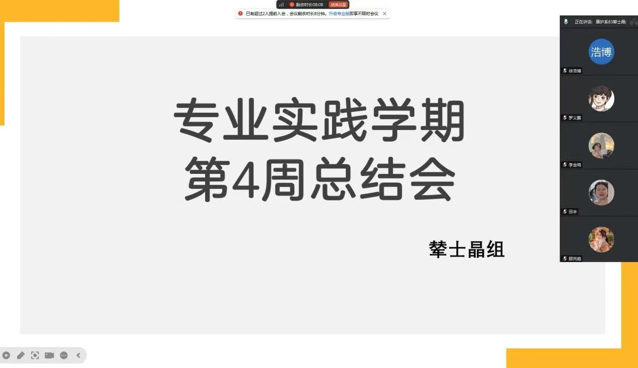 在老年护理专业实践学期第四周总结会上,辇士晶老师针对本周实践情况展开细致点评与重点指导。
