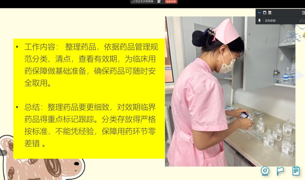 会议伊始,在总结内容方面,同学们在日常工作中展现出了一定的学习积极性,能够较为熟练地协助医护人员完成基础护理操作,如生命体征测量、病历整理等。然而,仍存在一些不足。部分同学专业知识掌握不够扎实,在面对复杂病情询问时,无法迅速准确地应答;在操作规范性上,少数同学对消毒流程的执行不够严格,存在操作步骤遗漏的情况;在与患者沟通交流时,部分同学语言表达不够清晰简洁,未能充分考虑患者的理解程度。针对这些问题,后续应加强专业知识的学习与巩固,定期组织内部小测验检验学习成果;开展操作技能强化培训,邀请经验丰富的医护人员进行示范指导;组织沟通技巧培训课程,通过模拟场景训练提升同学们与患者的沟通能力。