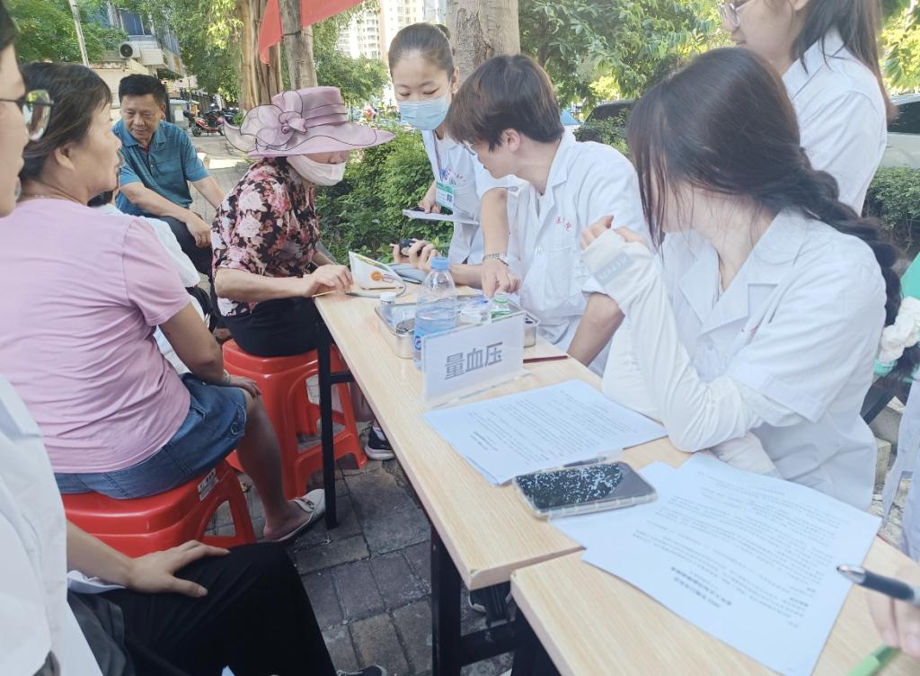 现场满是温暖画面:同学们或蹲身细语,耐心询问奶奶生活细节;或专注操作,为爷爷完成认知功能筛查;测血压、查血糖的同学,手法愈发熟练,还不忘轻声安抚紧张的老人。爷爷奶奶们全程配合,用包容与耐心,陪我们这群“医学生新兵”成长。