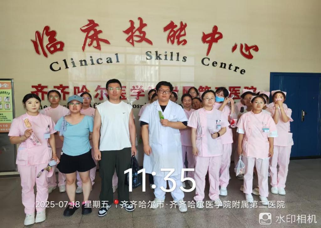 齐齐哈尔医学院附属第二医院专业实践学期已顺利且圆满地完成第五周见习任务。为及时总结前期经验教训、解答学生在见习过程中遇到的各类问题、明确后续实践要求与目标,并持续保障实践过程的质量与成效,指导教师范磊前往医院,对学生的见习情况进行全面且细致的检查与指导。