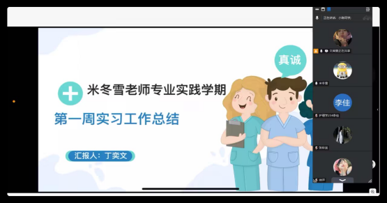 2025年6月21日进行了第一周实习总结会议,本次会议由学校带教老师米冬雪主持,丁奕文主讲。