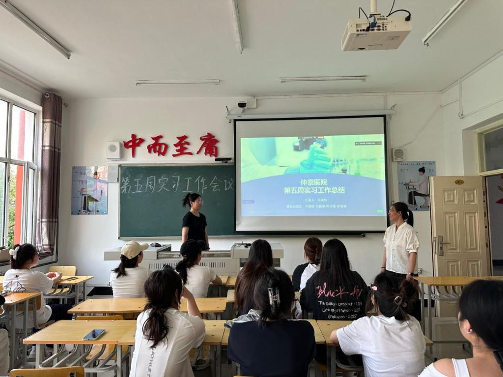 会上,仲泰医院及天津汇中医院实习小组分别选派代表进行汇报。同学们积极分享了本周深入各临床科室的实践体会与技能提升,特别是在基础护理操作、急症应对配合及护患沟通技巧等方面的具体进展。汇报不仅展示了扎实的学习成果,更体现了对自身短板的清醒认知,如部分操作熟练度不足、面对突发状况反应速度有待提高等,大家坦诚剖析,深刻反思。