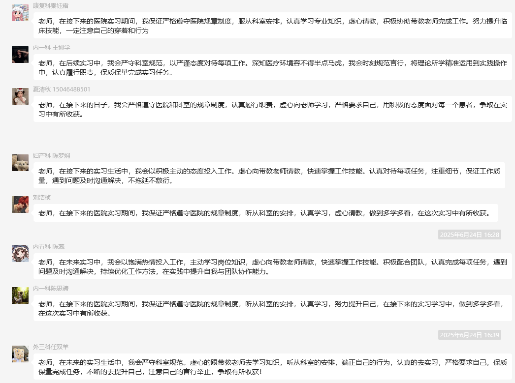 2025年6月24日下午,收到齐齐哈尔和平医院护理部田庚主任的消息,将三名学生退回学校,要求学校对学生加强管理。