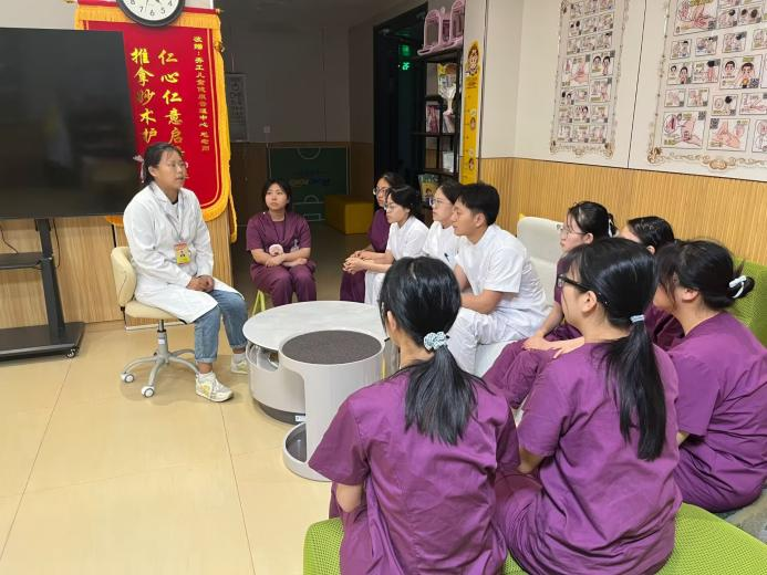 为进一步巩固专业实践学期学习成果,聚焦实操技能提升,7月18日17:00-18:00,孙玉翡老师组织小儿推拿微专业在齐工儿童健康管理中心集中实践的全体同学,召开了第五周线下总结会议。