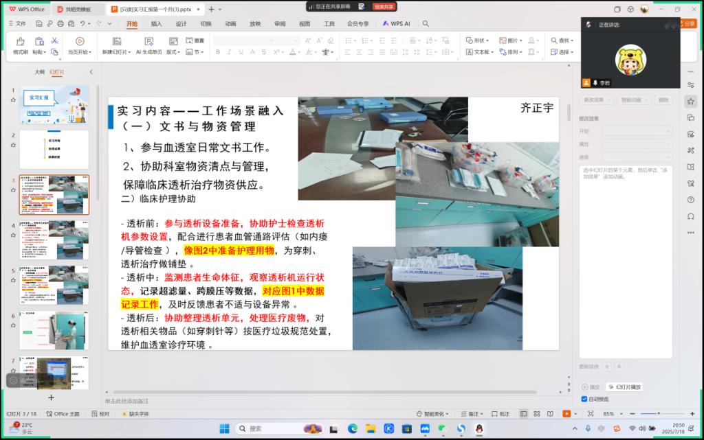 为了检验同学们在实习医院的学习成果,李岩、田佳老师于2025年7月18日以腾讯会议的形式进行月总结,全体成员参加。