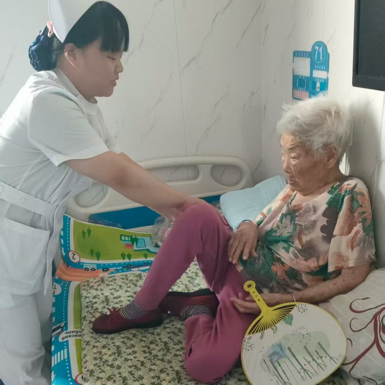 相比初来时为给老人翻身而手忙脚乱的自己,如今我已能熟练地为卧床的刘奶奶调整气垫床角度,在她咳嗽时及时递上水;也能准确记住张爷爷的用药时间,连他总藏起来的降压药都能“精准定位”。最让我欣慰的是,曾经见人就躲的失智老人陈奶奶,这周主动拉着我的衣角,让我陪她叠那方永远叠不完的手帕——这个小小的举动,比任何奖状都让我动容。