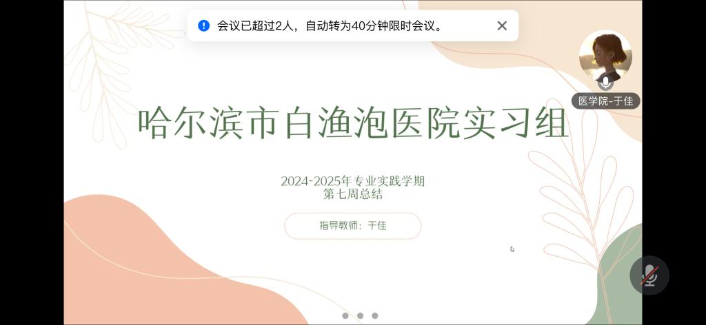 2025年7月31日,指导教师于佳组在腾讯会议召开社会实践学期第七周总结会议。