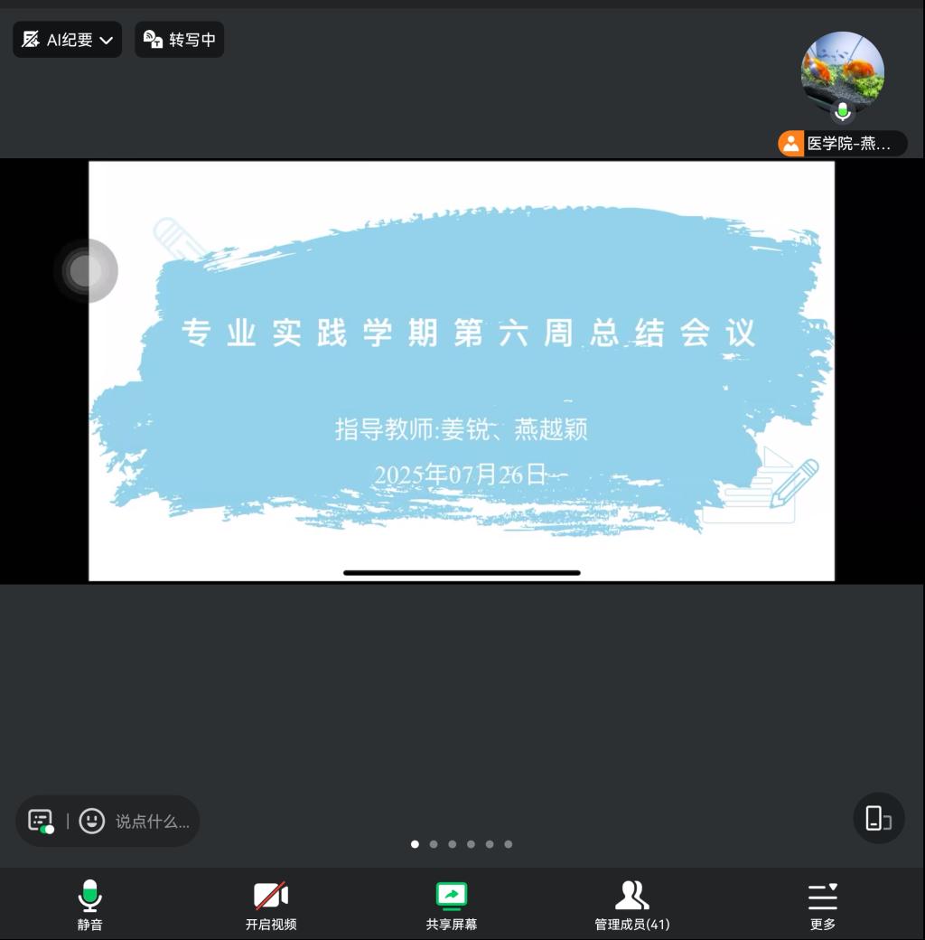 实习进入第六周,7月26日,专业实践学期第五周总结会顺利召开。燕越颖、姜锐组齐齐哈尔建华医院于7月26日召开专业实践学期第六周总结会,会议为线上形式。学生们最初的生涩渐渐褪去,心底却生出更多对护理工作的敬畏与感悟。