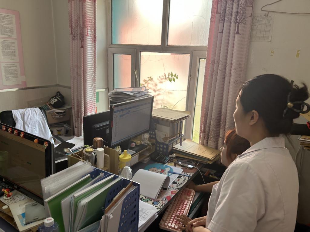 首先王芳护士长向介绍了社区卫生中心主要负责社区基本医疗和基本公共卫生,基本医疗特色为慢性病治疗及安宁疗护,此外还附属一个养老院及下级卫生服务中心,并带领参观了社区卫生服务中心环境,从一楼至三楼分别为门诊、药局、计划免疫、抢救室、病房等。随后,两位教师依据社区卫生服务中心工作开展了挂职锻炼,分别学习了社区健康档案录入、计划免疫、药局实践、养老院探访等工作。通过与临床带教老师沟通,了解到学生在社区卫生服务中心表现较好,工作积极主动,执行能力强;患者对学生也较为满意,表扬学生具有较强的责任心,是合格的暖心护士。