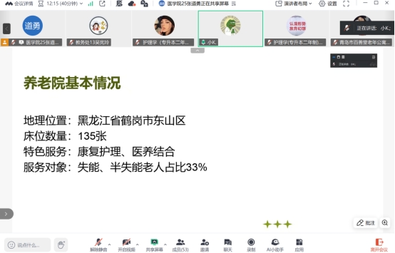 通过专业实践学期汇报答辩检验学生实践成果,学生们纷纷表示通过老年护理实践深刻认识到了老年护理行业的重要性和挑战性。学生通过实践不仅在专业技能上取得了进步,更在团队协作、沟通等方面获得了宝贵的经验。相信这些经历将对学生未来职业生涯产生积极的影响,不断提高专业素养和综合能力,为老年护理行业的发展贡献力量。