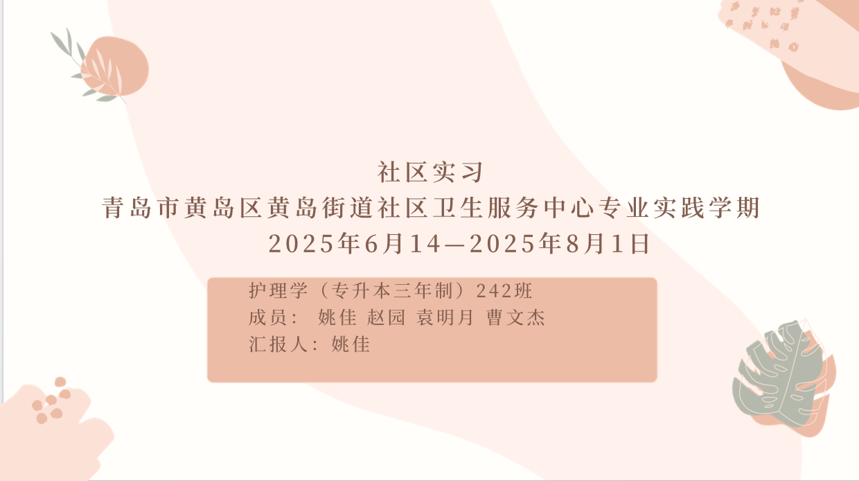 实习单位涵盖威海市环翠区嵩山街道、青岛市黄岛区黄岛街道、南京市雨花台区岱山等社区卫生服务中心 。同学们分别在护理部、全科门诊、公共卫生科等岗位实践,深入社区医疗一线。如在威海市环翠区嵩山社区卫生服务中心,实习护士参与门诊输液、慢性病患者随访;青岛市黄岛区实践同学,在老年病科开展药物整理、健康档案完善工作。