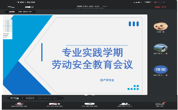 为强化学生劳动安全意识,提升安全防护能力,8月1日,助产学专业通过腾讯会议组织开展劳动安全教育专题会议。本次会议由专业负责人马静及辅导员共同主持,全体在校生参与,旨在为学生筑牢实习期间的职业安全与操作防护屏障。