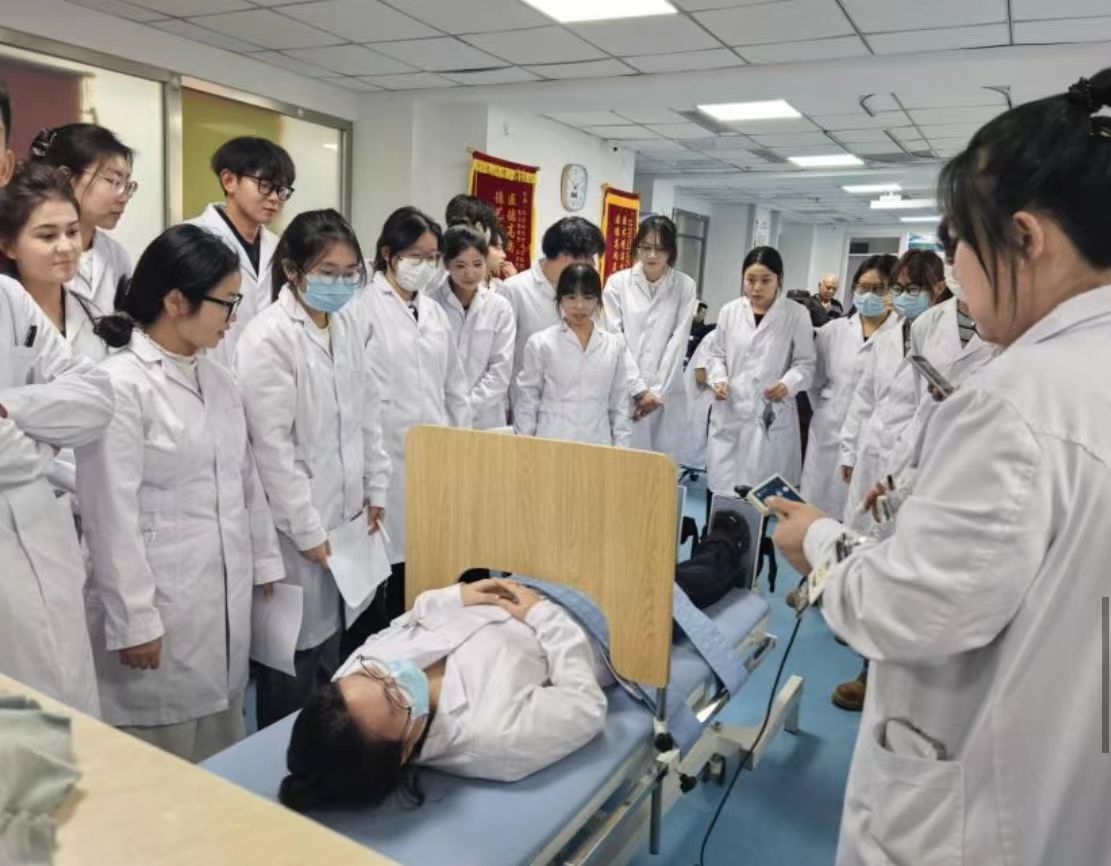 康复科见习环节,带教医师结合临床案例,向学生系统讲解了物理治疗、作业治疗等核心康复技术的应用场景,现场演示了肌力评估、关节活动度测量等基础操作。同学们认真观摩学习,主动围绕康复设备使用、患者沟通技巧等问题向老师请教。