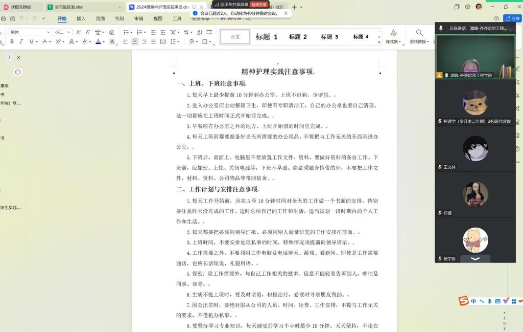 为扎实推进精神护理专业实践学期工作,帮助学生明晰实践目标、掌握实操要点,2026年1月4日,潘娜老师通过腾讯会议平台组织召开“精神专业实践学期线上启动会”,全体同学参加。