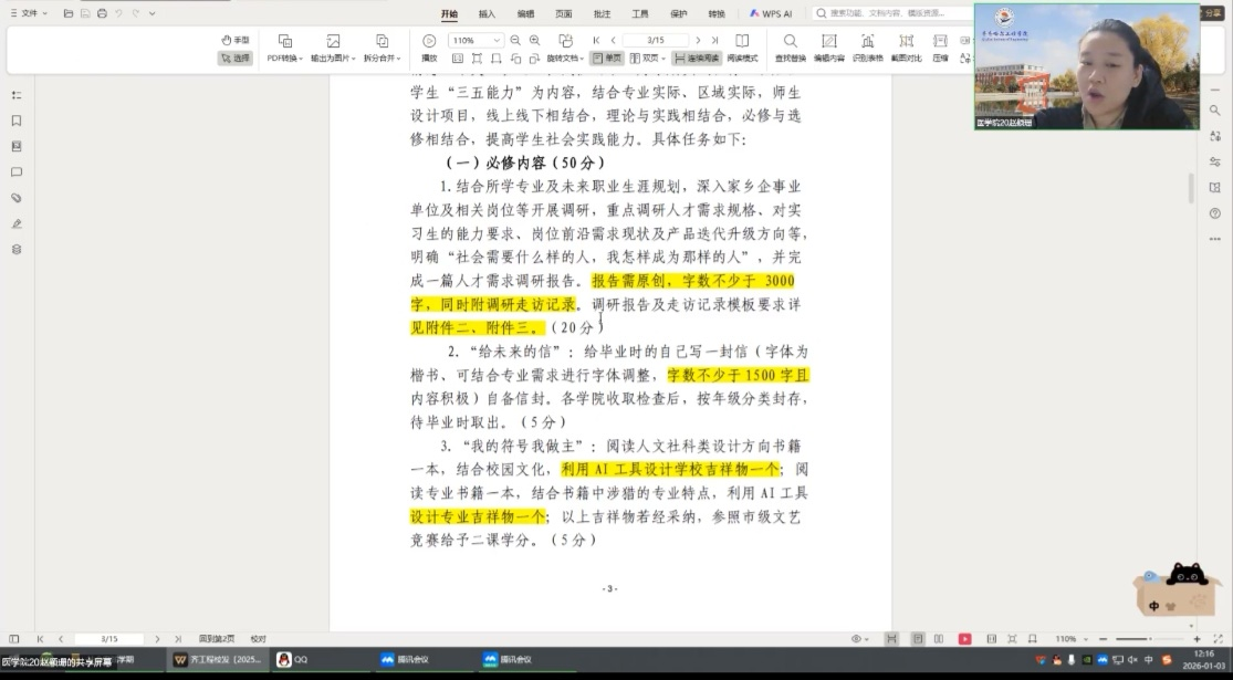 针对实践学习的注意事项,赵颖珊老师特别叮嘱,学生在参与通识教育学习的同时,切勿忽视每日相关实践内容的跟进,务必按照要求完成学习任务;在选修内容选择上,要仔细核对要求,避免漏选情况发生。此外,颖珊老师还鼓励学生结合自身所在省份的特点,积极宣传学校的专业优势与办学特色,展现学校风采。