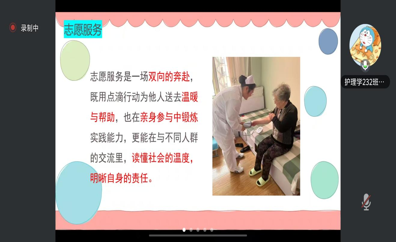 首先,各小组汇报首周实践完成情况。各小组已按要求启动基础任务,其中“致未来的信”已完成30人,德育部分的选修课程已完成25人,任务完成度较高,有3人完成“志愿服务”,累积时长14小时,对接社区养老机构,开展了血压测量、健康宣教等基础护理志愿活动,寻新“荐”面礼及调查报告都在有序推进中。