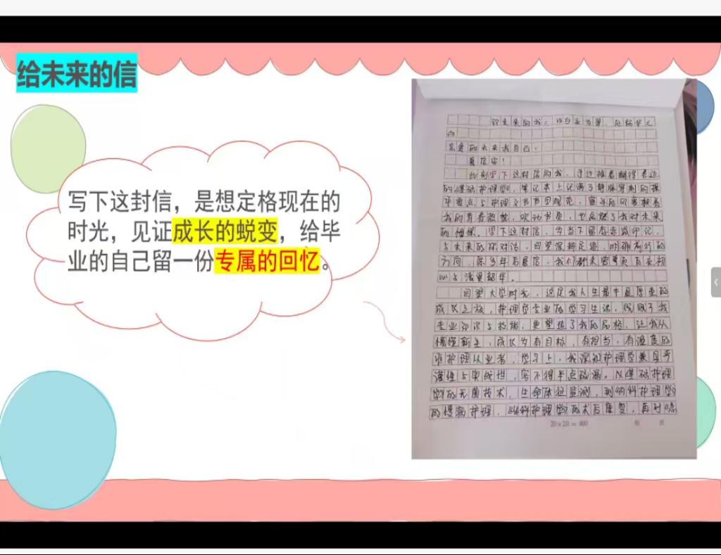 其次,尹娜老师点评任务完成质量并给予针对性地指导。老师肯定了各组的积极性与初步成果,尤其认可书信创作中体现的护理职业认同感。部分小组对“我的符号我做主”任务的专业结合度把握不足,吉祥物设计未充分体现护理专业特色;针对这些问题,尹娜老师结合护理专业特点给出修改建议。