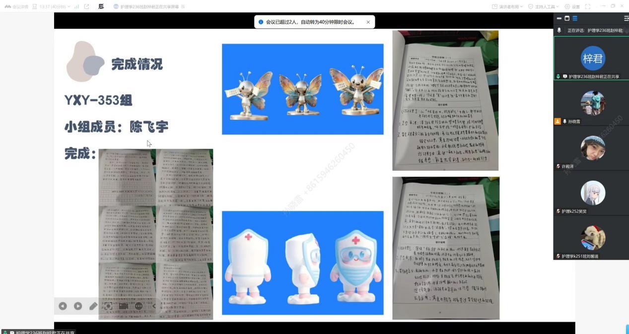 其次,孙晓雪根据存在的问题对社会实践学期要求与规范进行了反馈,规定了专业实践书籍需为课程之外的专业内容,如《基础护理学》这类课堂已学过的书目不建议重复阅读,志愿服务活动必须与专业相关,作业提交需按学习通发布的进度要求,在每阶段的截止前完成。