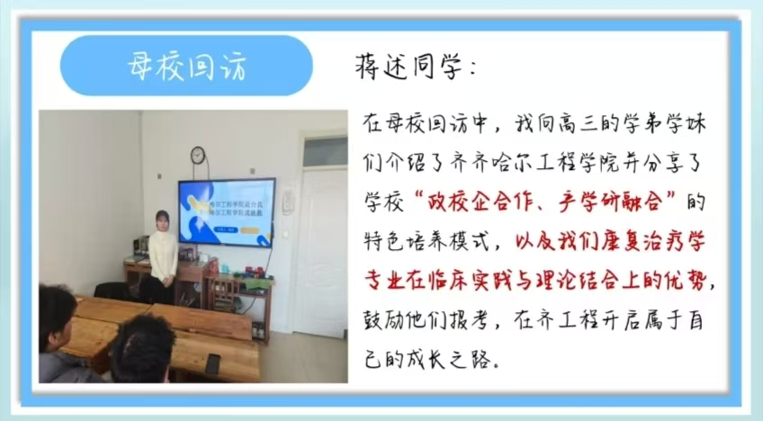 2026年1月18日,齐齐哈尔工程学院医学院康复治疗学专业YXY-093组,开展2026年社会实践学期第二周成果汇报。本次汇报由四支小队依次展示实践成果,老师最后进行总结表示各组进步很大,并鼓励各组成员。