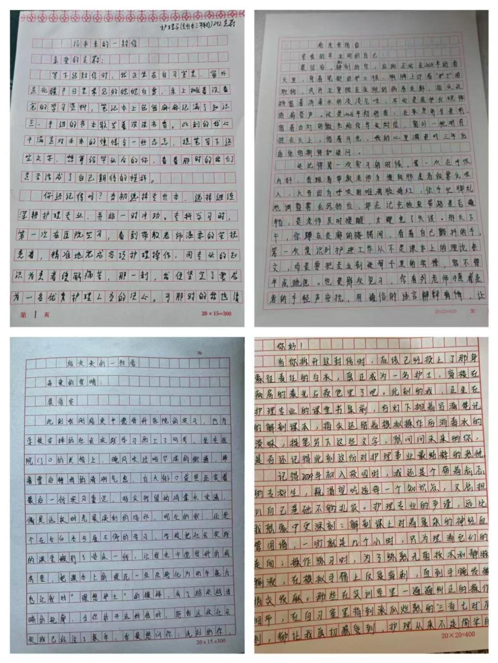 在护理学专业社会实践学期的推进中,YXS-168组以“给未来的信”为载体,用最真诚的笔触记录下护理学子的初心与成长。吴蔚、赵园、刘雪晴、汪家兴四位同学将对职业的憧憬、对成长的感悟凝于笔端,写下了属于他们的青春誓言。