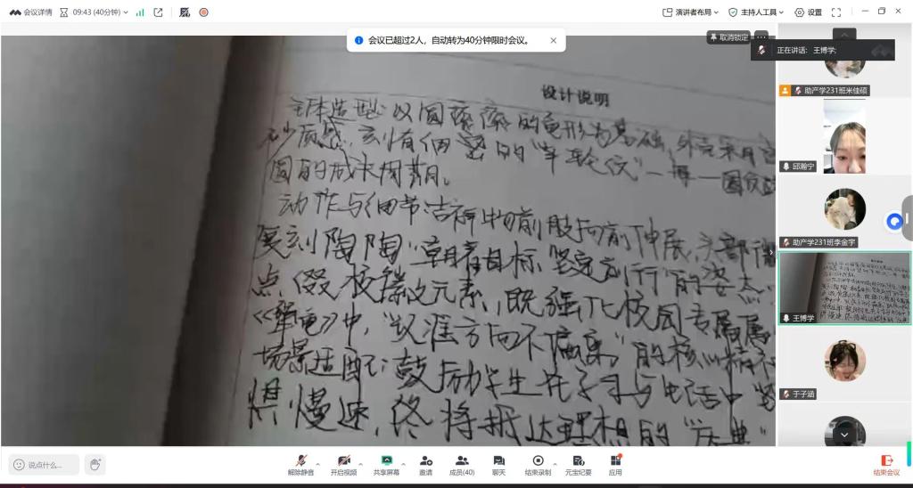 1月12日,助产学231班于腾讯会议开展社会实践学期第一周总结会议,由辅导员邱瀚宁主持,助产学231班全体同学参加,本次会议旨在总结社会实践学期第一周的进展,掌握同学们项目推进的实际情况,督促大家在实践中认真提升自我,保障本学期社会实践任务顺利完成。