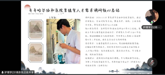 随后,同学们依次汇报了各自的调研单位及调研成果,结合实地观察与岗位交流,分享了对所调研岗位的认知与感悟,进一步明确了各岗位的职业要求与发展方向。针对同学们在调查报告书写中可能遇到的问题,李岩老师进行了细致指导,从报告结构、内容重点、数据整理等方面提出具体建议,助力同学们规范完成报告撰写。