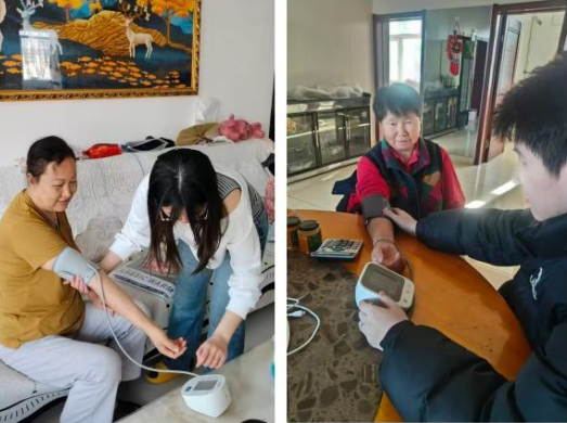 李雨彤与李延旭同学则深入社区独居老人家中,在测量血压的同时,他们详细记录老人的高血压病史与用药情况,对存在漏服、错服药物问题的老人耐心提醒,并结合老人的饮食习惯给出低盐低脂、少食多餐的建议,用严谨的专业态度和温暖的陪伴,为独居老人筑牢健康防线。