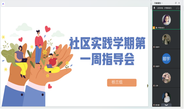 1月4日下午,护理学(专升本二年制)2025-2026学年度社区实践安全教育暨上岗前教育腾讯会议召开。会议由杨兰老师主持,其负责的实践小组组长及组员参会。
