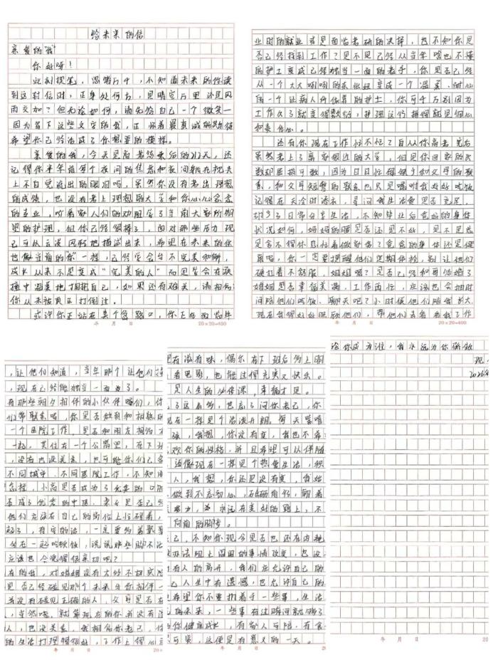 一纸信笺,承载初心;万般期许,皆为前行。此次“给未来的一封信”主题活动,不仅让小组成员在回望中总结成长,更在期许中明确方向。在未来的大学生活中,这支充满朝气的护理学子小组,必将以坚定的信念、踏实的行动,践行护理使命,深耕专业学习,在成长的道路上稳步前行,努力将自己培养成为符合时代要求的优秀护理人才,用青春与汗水书写属于护理学子的精彩篇章。相信这四位同学定会以信为约,以梦为马,笃行实干,在护理专业的学习道路上不断探索、持续进步,以扎实的专业本领、坚定的职业信念,奔赴属于自己的美好未来,努力成为守护生命健康的合格护理人。