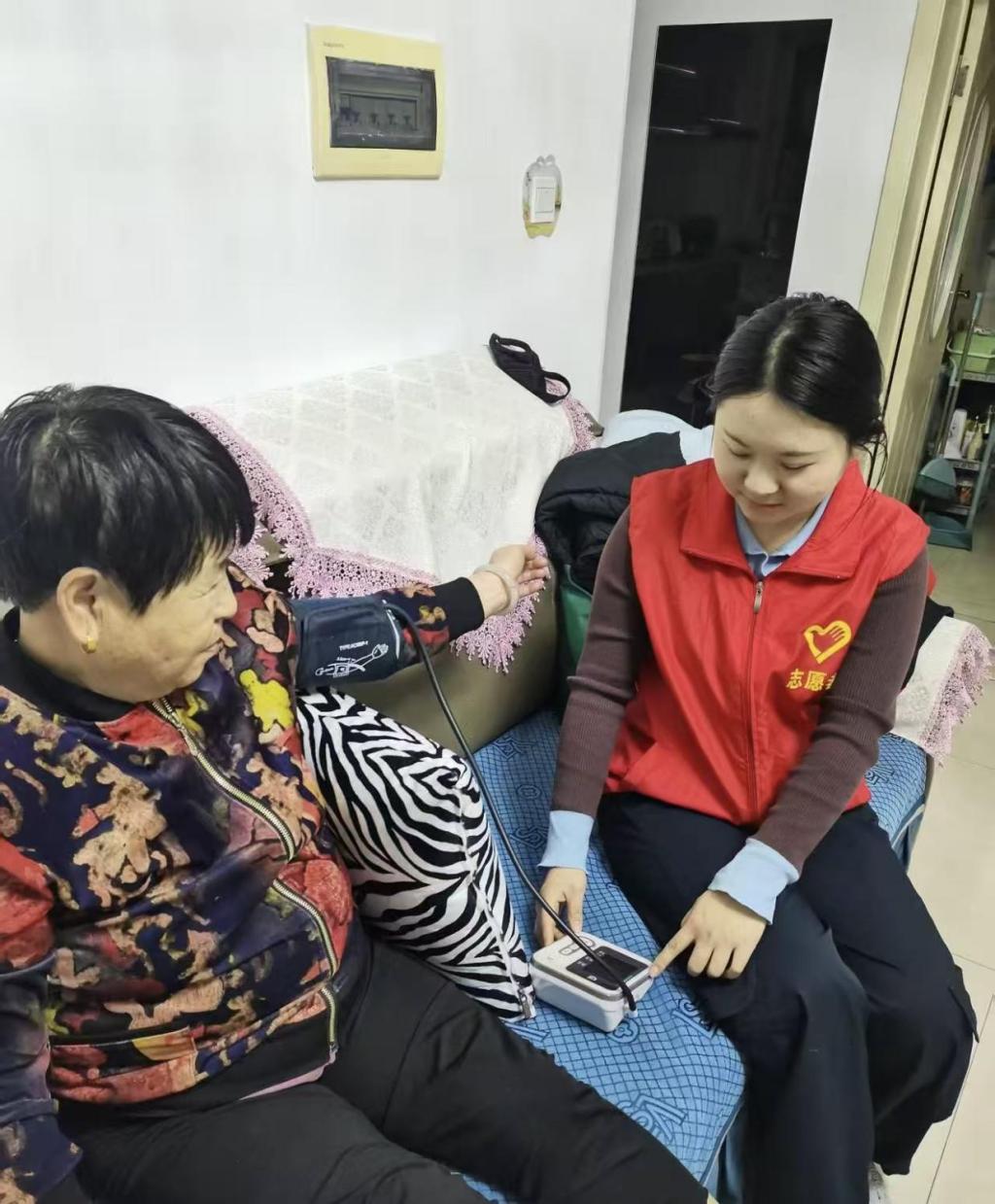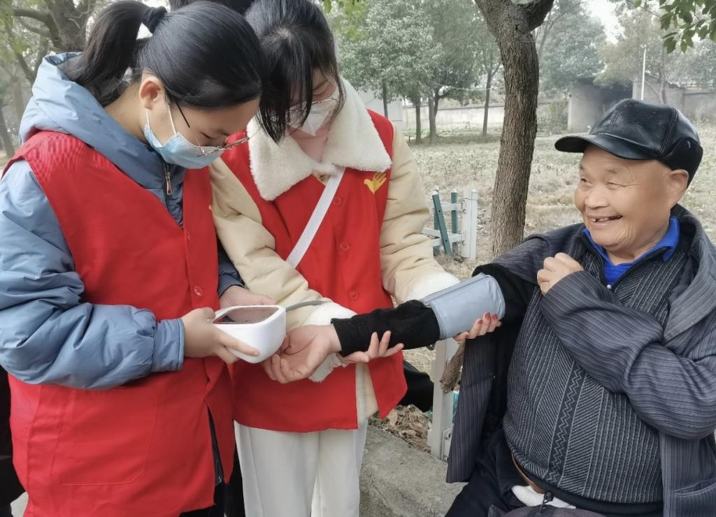 与此同时,徐慧娜带着血压计走进社区独居老人家中,为老人测量血压并讲解冬季健康防护知识。她还和小组其他成员一起,在户外为老人提供义诊服务,老人脸上的笑容,成为志愿者们最暖心的收获。