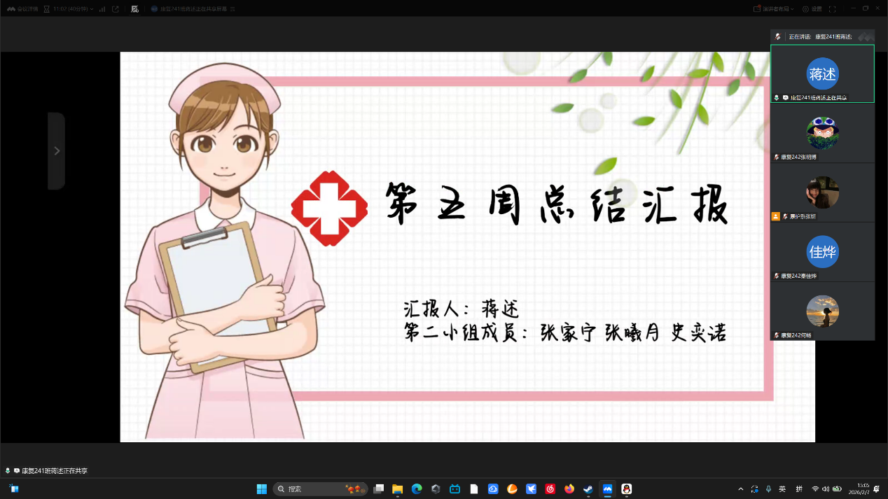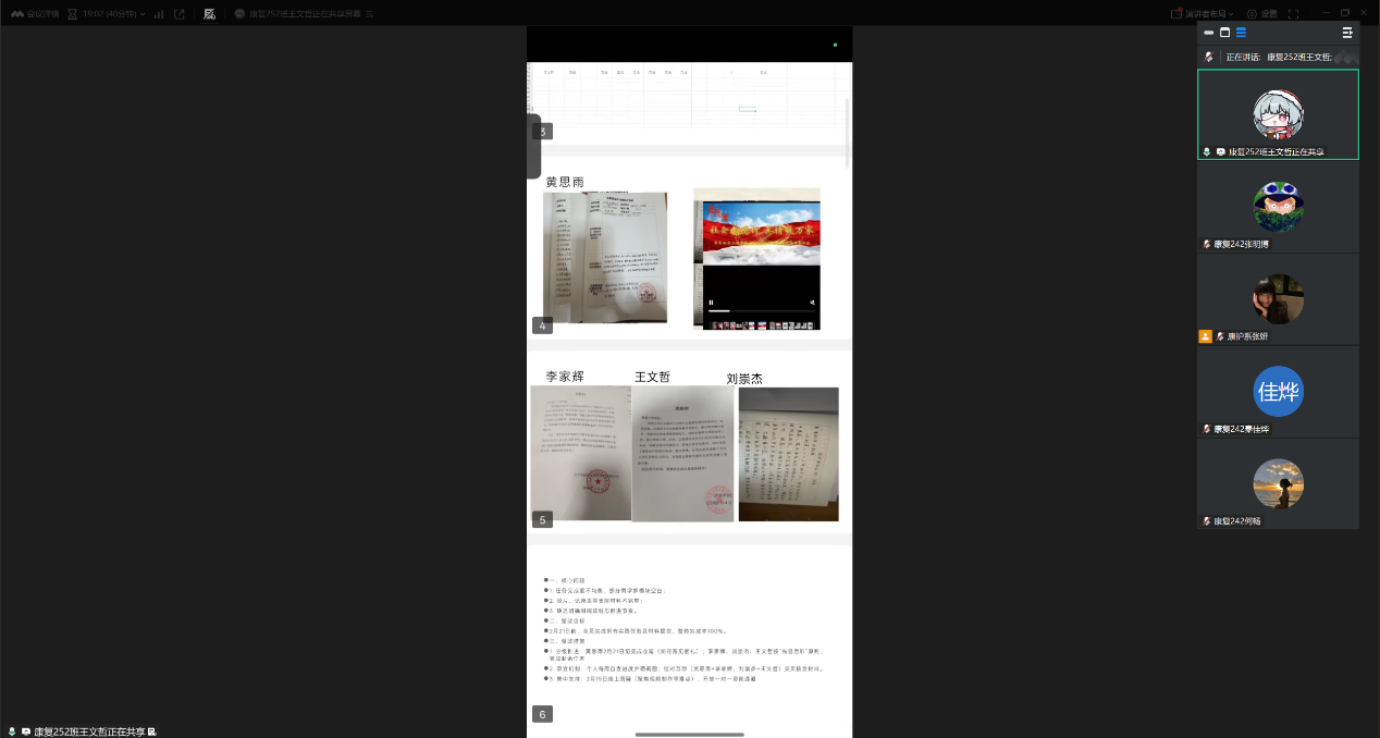 2026年2月7日,张妍老师线上组织召开社会实践学期第五周线上总结会,让每个小组列出表格对小组成员完成任务进行总结和提出改进措施。