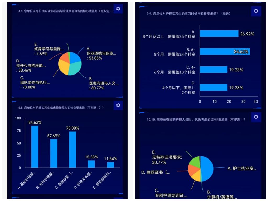 李金晶发布护理学专业人才需求调研报告,系统梳理行业用人现状,为同学规划学业与就业提供详实参考。调研覆盖各级医疗及养老服务机构,其中三级医院占34.62%,社区服务中心占26.92%,二级医院、民营机构及养老康复护理机构均有涉及,基层医疗与养老领域人才缺口突出。招聘频次以每季度26.92%为主,行业对护理人才补充需求持续旺盛。报告显示,用人单位最看重医患沟通与人文关怀素养(80.77%)、团队协作与执行能力(73.08%);临床操作层面,基础护理操作(84.62%)、急救技能(73.08%)为核心考核指标。李金晶在报告中建议,护理学子要紧扣调研指向,夯实专业技能、强化人文素养,全面贴合行业需求成长成才。