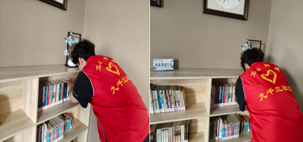 在青龙山村的图书角,倪健峰同学认真细致地对书籍进行分类归位、擦拭除尘、编号登记和规范摆放。他按照文学、科技、历史、少儿等不同类别,对图书角的书籍进行了重新整理,让每一本书都有了自己的“家”;他用抹布仔细擦拭书架和书籍上的灰尘,让图书角焕然一新;他还为每一本书制作了标签和目录,方便村民们查找和借阅。