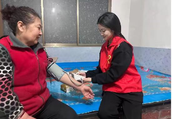 张佳鑫在社区志愿服务中,张佳鑫为居民提供血压测量、健康咨询等服务。她耐心细致、态度温和,用专业知识为大家答疑解惑,把温暖与关怀送到居民身边。