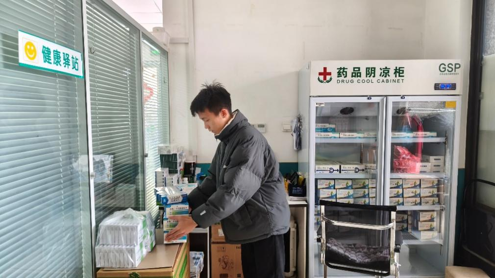 侯俊泽同学前往济南桃园小区北区社区卫生服务中心,在工作人员的指引下,负责在前台引导患者就诊,药房药品整理与盘点、诊室卫生清扫等工作,有效分担了一线医护人员的工作压力。