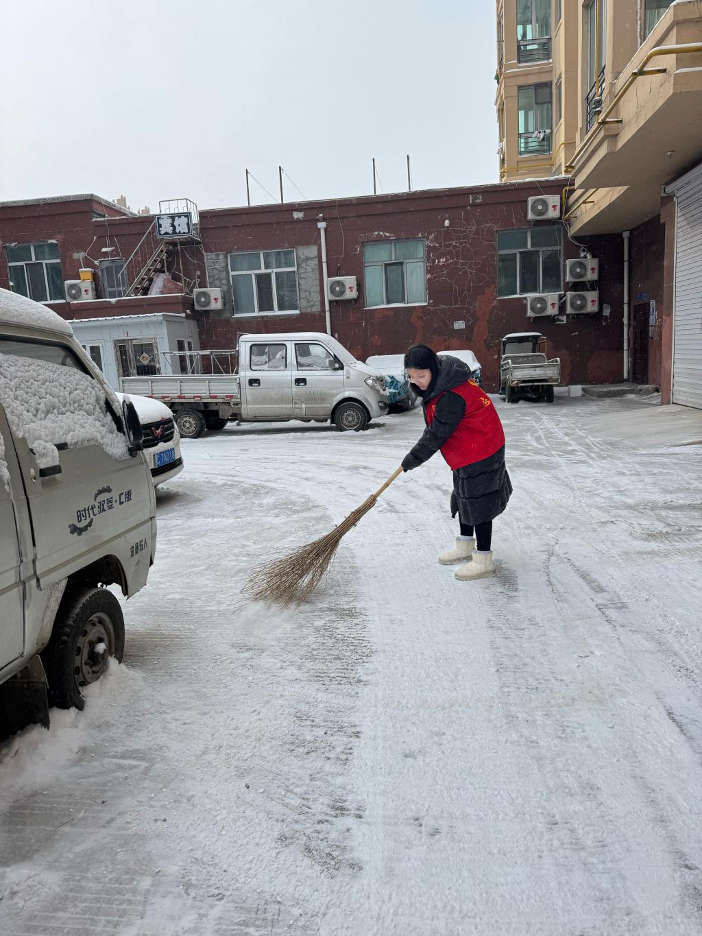 活动伊始,陈莹琳与其他志愿者们分工协作、干劲十足。针对社区楼道、墙角等卫生死角,她们手持夹子、垃圾袋,仔细捡拾散落的塑料袋、纸屑、果皮等生活垃圾,不放过任何一处隐蔽的垃圾,让原本杂乱的角落焕然一新。其次,面对道路上残留的积雪,大家拿起铁锹、扫帚,齐心协力铲除结冰积雪、清扫路面,为居民开辟出一条安全通畅的出行道路,有效消除了雨雪天气带来的出行隐患。此外,社区楼道墙面、电线杆上随处可见的违规小广告,不仅影响美观,也破坏了社区整体环境。志愿者们带着铲刀等工具,逐栋楼道、逐面墙面进行清理,社区环境得到显著提升。