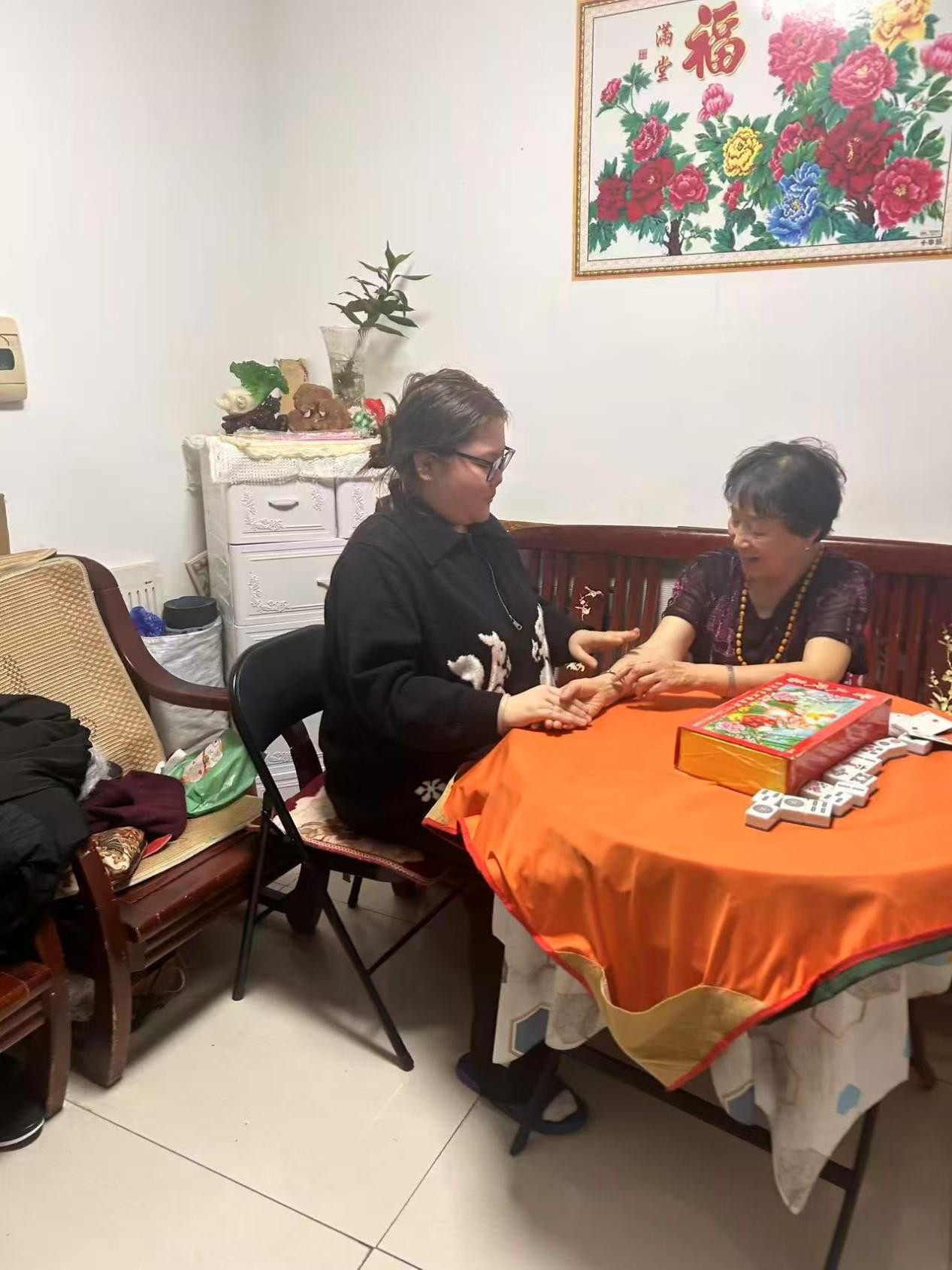 在社区孤寡老人家中,冯熙越同学正握着老人的手,轻声交谈、细致查体。她为老人测量血压、检查关节状况,耐心讲解冬季保暖与跌倒预防的注意事项,还帮老人整理房间、唠家常,让冷清的小屋充满了欢声笑语。