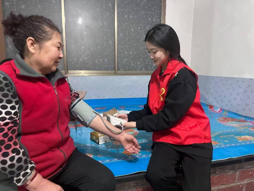 张佳鑫在社区志愿服务中,张佳鑫为居民提供血压测量、健康咨询等服务。她耐心细致、态度温和,用专业知识为大家答疑解惑,把温暖与关怀送到居民身边。
