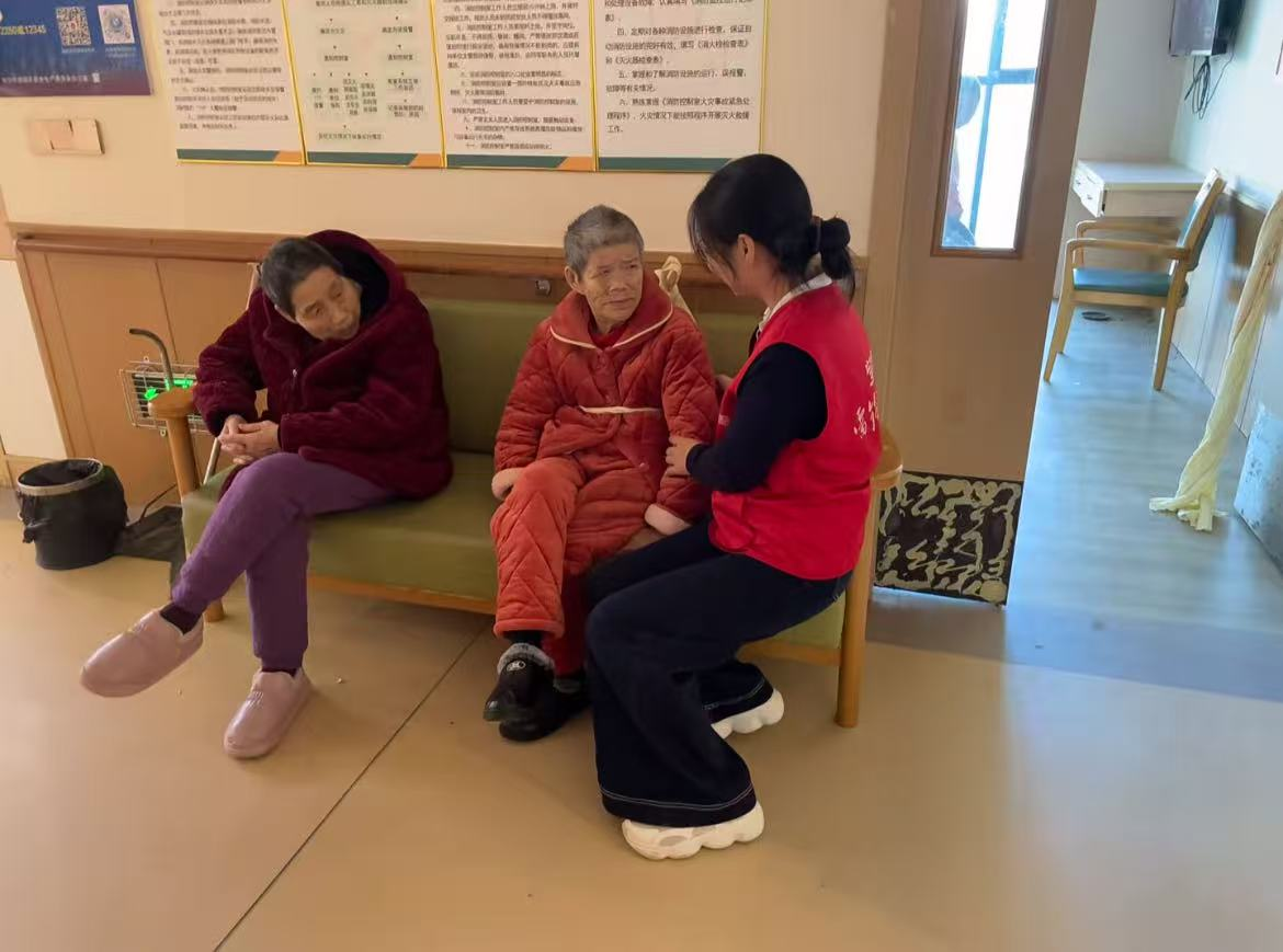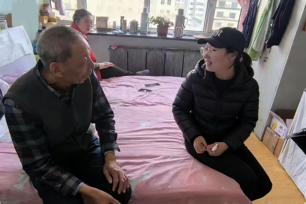 在志愿服务实践中,四位同学围绕呈现了精彩的服务分享。邸东凤同学聚焦社区健康义诊,用镜头记录了为居民测量血压血糖、提供健康咨询的暖心瞬间,从血压数值解读到日常保健建议,她耐心细致地解答每一个疑问,展现了扎实的专业功底与服务意识。齐欣然同学则走进高龄独居老人家中,开展居家照护志愿服务,刘祥婧同学和杨羽墨同学走进养老院与老年人聊天并通过协助翻身叩背、指导压疮预防、讲解用药安全等细节,将护理专业的温度融入每一次陪伴。