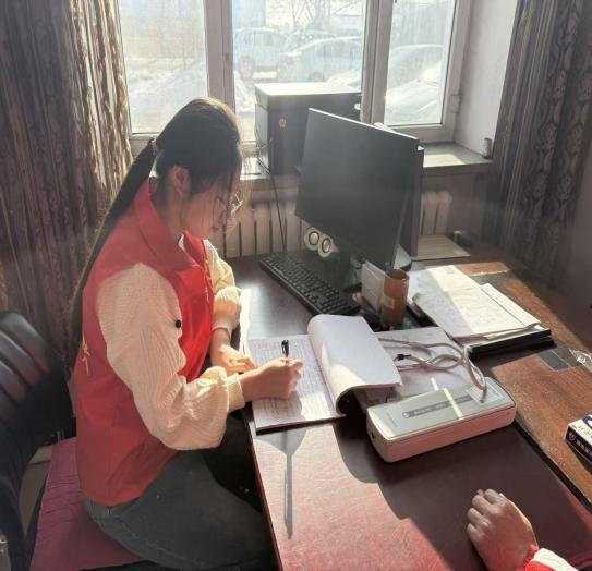 在社区卫生服务站,另一位志愿者护理学专业护理学242班马梓茜同学则化身“健康守护者”,认真协助医护人员开展居民健康档案整理、诊疗信息登记等工作。她伏案书写、细致核对,耐心为前来咨询的居民答疑解惑,用专业与耐心为社区居民提供便捷的健康服务。