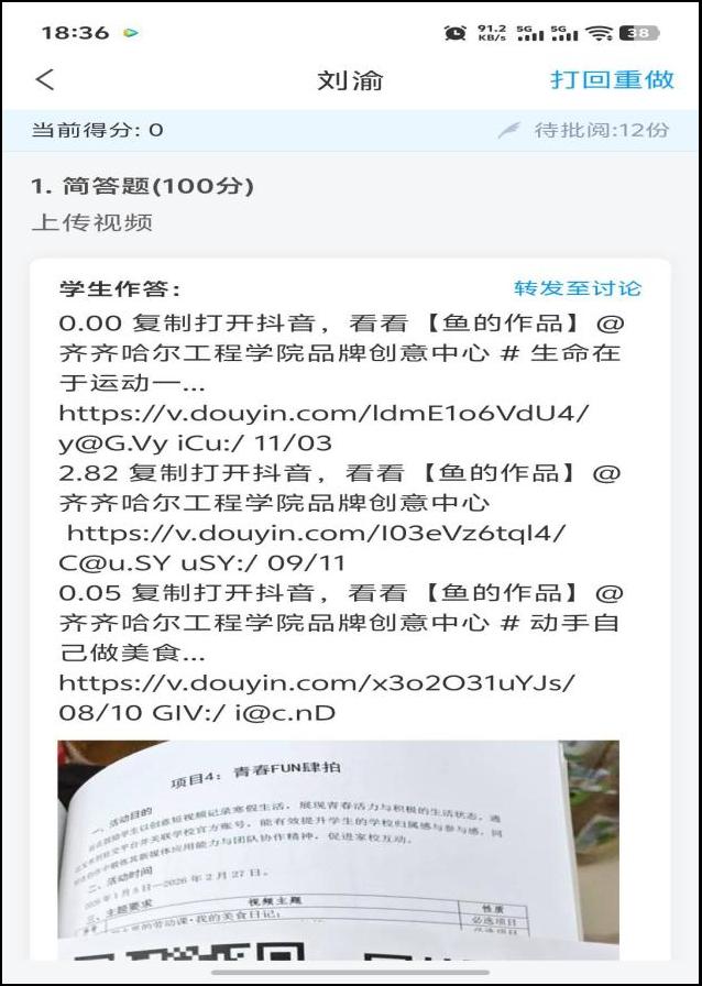 交流环节中,一组学生代表依次进行实践汇报,分享视频拍摄的思路、过程、遇到的难题与解决经验,师生互动交流、答疑解惑,进一步深化了实践认知。