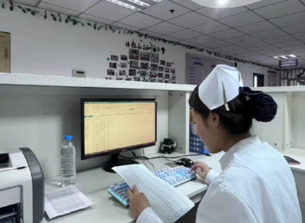 深耕幕后强技能,严谨笃行守初心。石鸿维在护理实践中坚守严谨细致的工作态度,主攻护士站文书与数据处理工作,扎实将课堂理论知识转化为实际操作能力。她对照纸质记录单,在电脑系统中仔细录入、核对患者生命体征、护理记录、医嘱等相关信息,严守护理文书的严肃性,锤炼了高压环境下保持冷静、精准高效的工作能力。同时,她通过分析电子病历掌握患者病情与护理需求,及时确认、传达新医嘱,保障临床护理工作无缝衔接,深刻体会到护理工作环环相扣的整体性。
